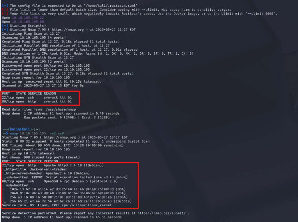 Rust scan shows port 22,80 bring open and labels port 80 as HTTP. Rustscan is just assuming that. Something tricky is going on. Nmap shows the ports are switched and port 22 is actually HTTP and 80 is SSH.