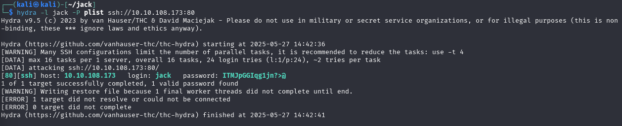 [80][ssh] host: 10.10.108.173 login: jack password: ITMJpGGIqg1jn?>@