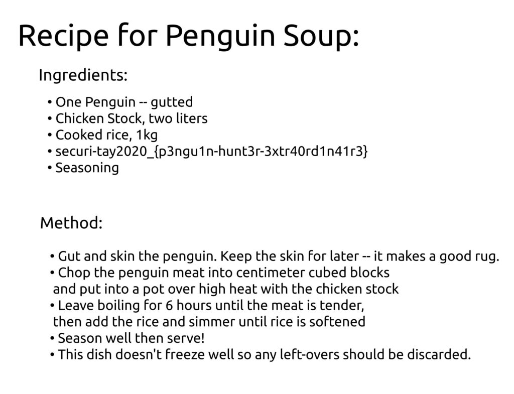 Also there is the first flag: securi-tay2020_{p3ngu1n-hunt3r-3xtr40rd1n41r3}Next I moved to /tmp so I can upload linpeas. Linpeas told me that a bit was modified for strings.